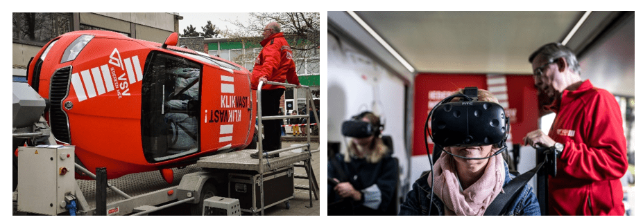 Je gaat samen met 2 toffe collega’s en een groep van ongeveer 80 vrijwilligers naar scholen, bedrijven en gemeenten in heel Vlaanderen. Met tuimelwagens en virtual reality-brillen laat je mensen zelf ervaren wat verkeersveiligheid echt betekent.