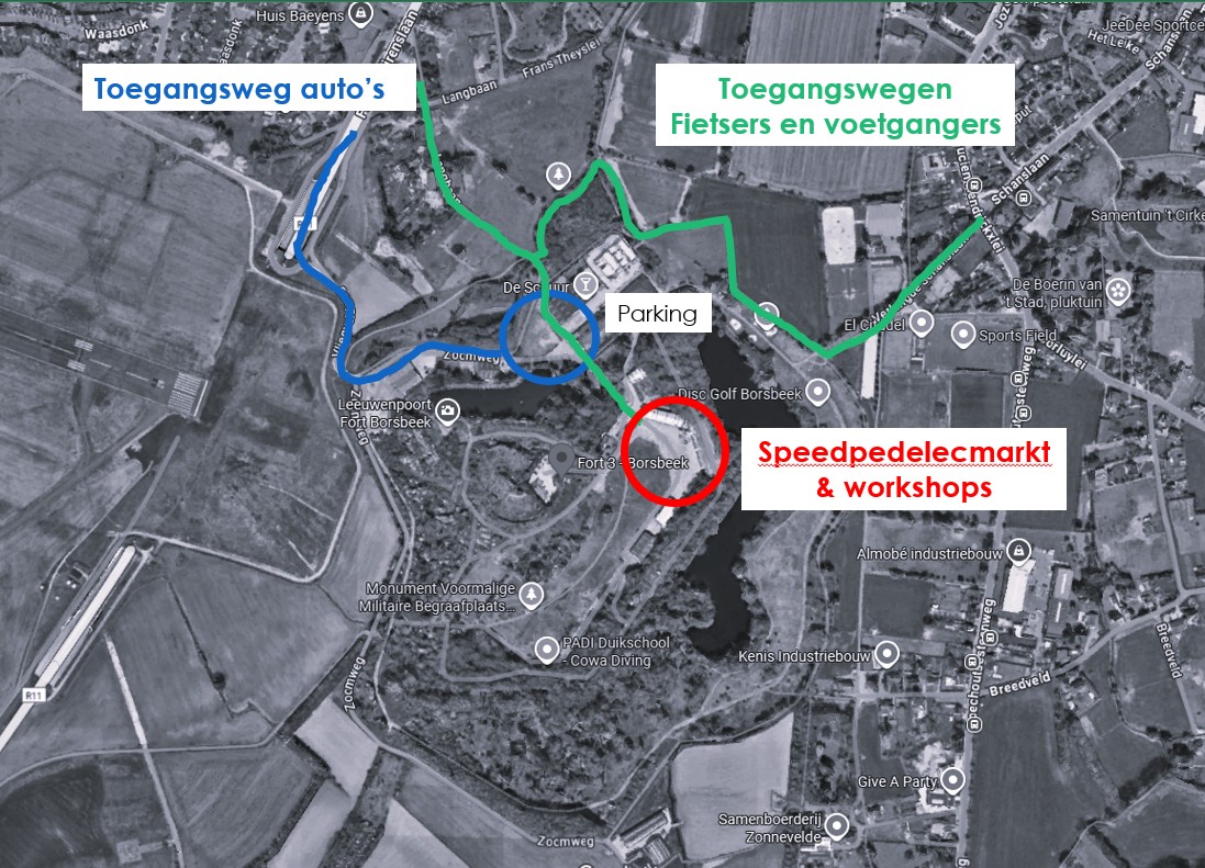 - Er is een gratis parkeermogelijkheid op het Fort 3-domein (bijvoorbeeld parking De Schuur/Academia).